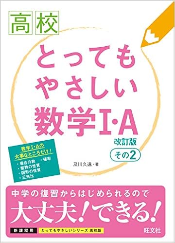 とってもやさしい数学1・A 改訂版 その2 (高校とってもやさしい) (日本語) 単行本 – 2014/9/22 - 数学I・Aの内容で特に重要な・場合の数・確率・整数の性質・図形の性質・三角比をわかりやすく、ていねいに解説しました。高校で学ぶ内容の前に、「中学からの復習」で中学校時代に学んだことを復習できるようになっています。